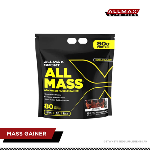 Introducing AllMax Sport – AllMass Advanced Muscle Builder. Our Advanced Muscle Builder mixes instantly in ice-cold water or milk and tastes like a thick frothy post workout shake. Get a massive 2000 calories and 80 grams of protein in every 5 scoops.